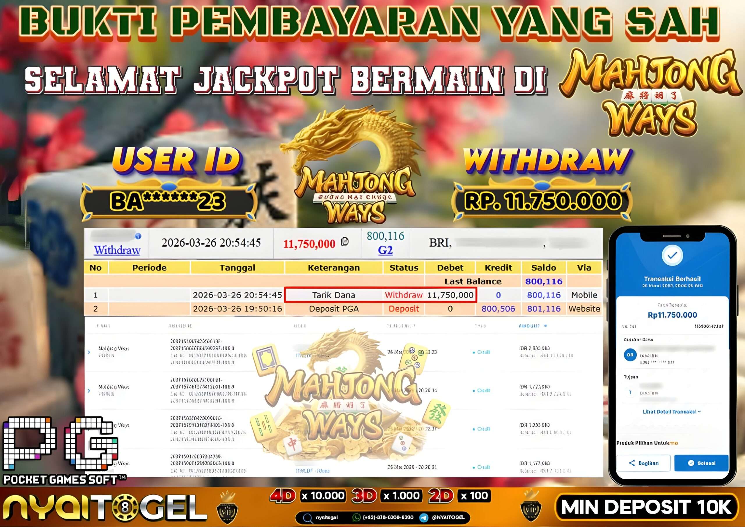 Berikut ini adalah Bukti Jackpot Slot Nyaitogel 26 Maret 2026 yang sudah diproseskan langsung ke rekening member kami :