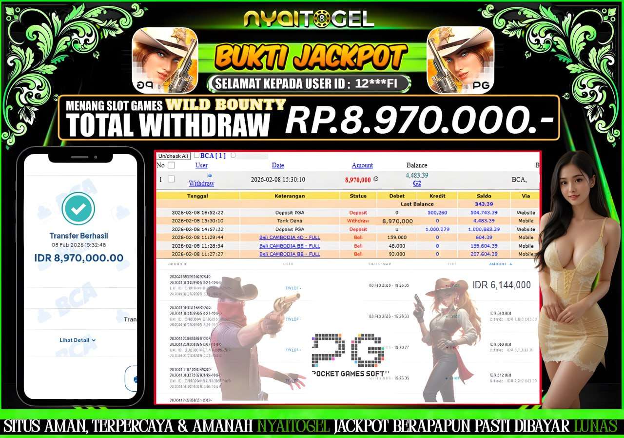 NYAITOGEL – Bukti Jackpot Slot, Situs Bandar Togel Online, Live Casino dan Slot Online Terpercaya yang terbukti membayar berapapun kemenangan Anda. Jika Anda masih mencari Situs Bandar Terpercaya, jangan ragu untuk bergabung bersama NYAITOGEL. Hanya dalam 1 akun Anda bisa menikmati semua permainan yang disediakan yang di dukung dari berbagai provider ternama serta terpercaya dengan minimal deposit hanya Rp. 10.000,- melalui transaksi Bank Lokal Indonesia dan Dompet Digital yang online 24 jam.