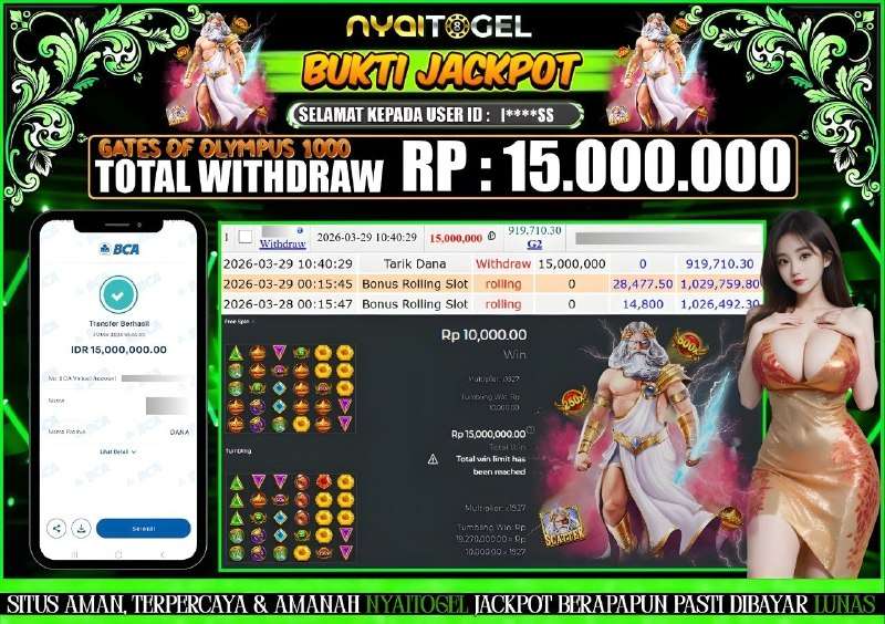 NYAITOGEL – Bukti Jackpot Slot, Situs Bandar Togel Online, Live Casino dan Slot Online Terpercaya yang terbukti membayar berapapun kemenangan Anda. Jika Anda masih mencari Situs Bandar Terpercaya, jangan ragu untuk bergabung bersama NYAITOGEL. Hanya dalam 1 akun Anda bisa menikmati semua permainan yang disediakan yang di dukung dari berbagai provider ternama serta terpercaya dengan minimal deposit hanya Rp. 10.000,- melalui transaksi Bank Lokal Indonesia dan Dompet Digital yang online 24 jam.