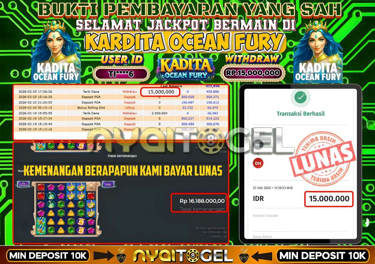 Berikut ini adalah Bukti Jackpot Slot Nyaitogel 25 Februari 2026 yang sudah diproseskan langsung ke rekening member kami :