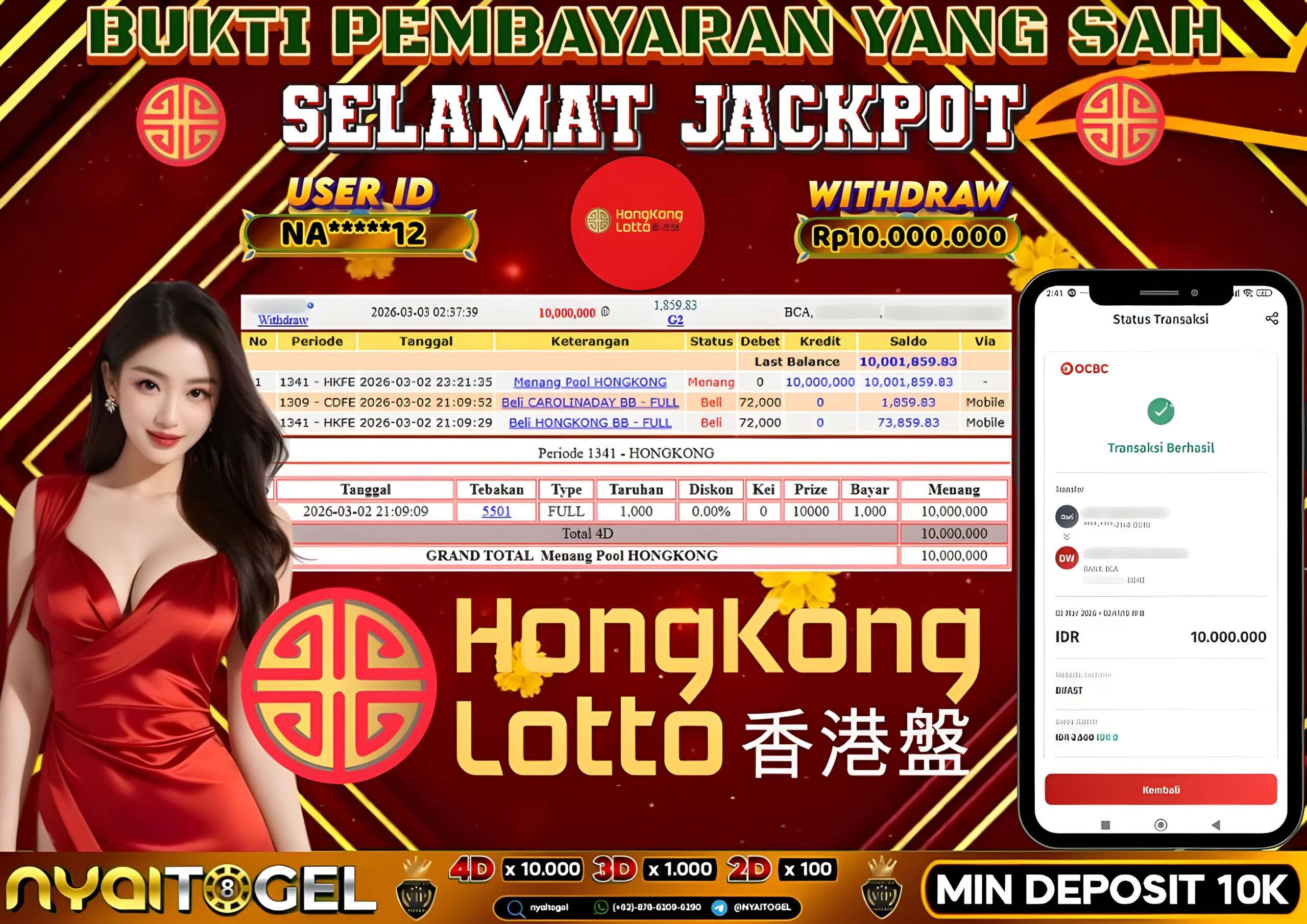 Berikut ini adalah Bukti Jackpot Togel Nyaitogel 03 Maret 2026 yang sudah diproseskan langsung ke rekening member kami :