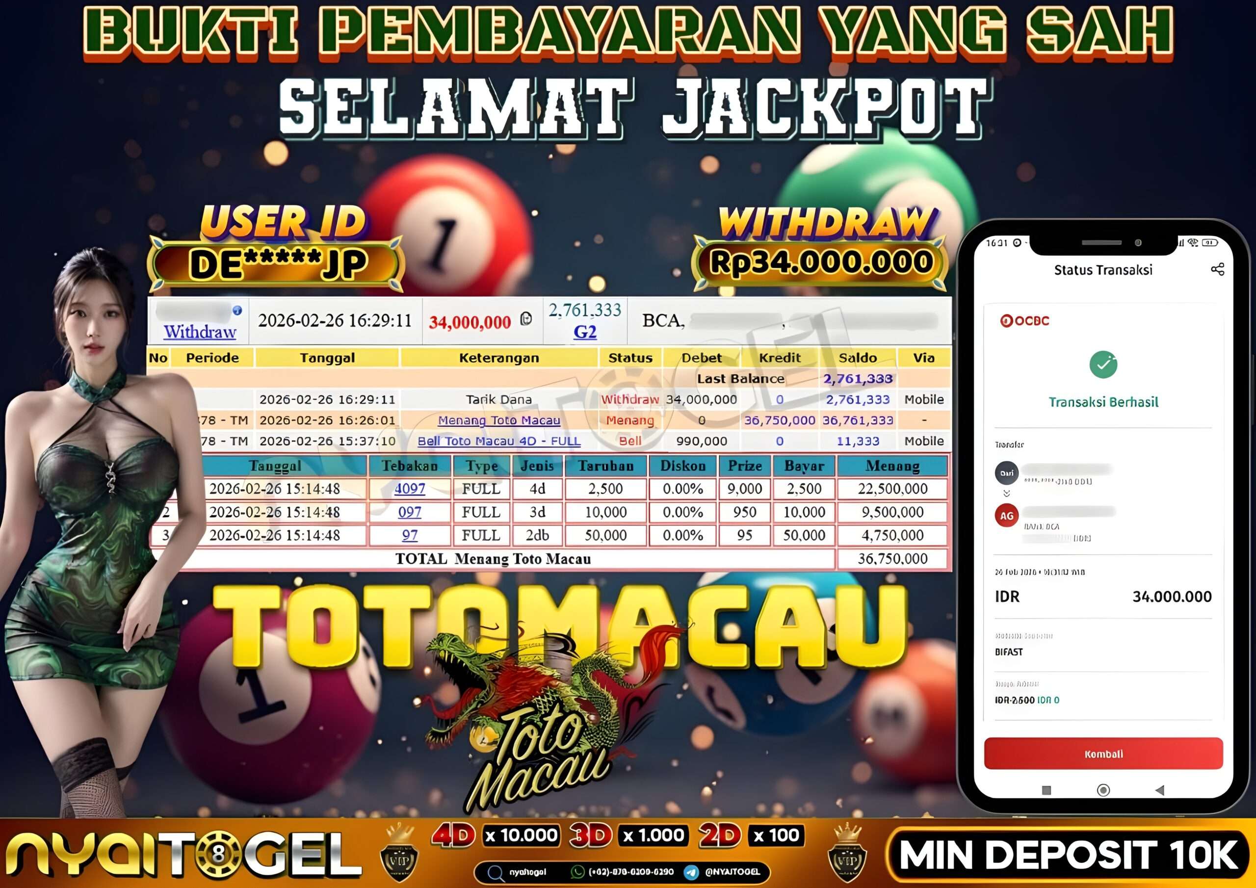Berikut ini adalah Bukti Jackpot Togel Nyaitogel 26 Februari 2026 yang sudah diproseskan langsung ke rekening member kami :
